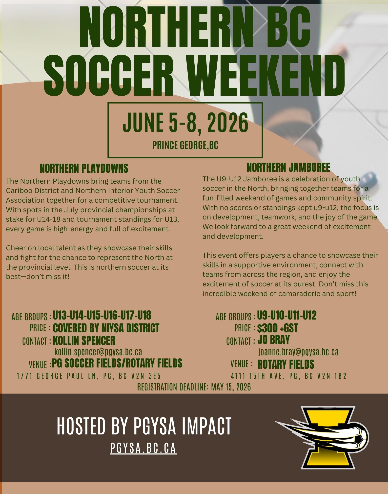 The Prince George Youth Soccer Association Impact is a growing soccer club dedicated to excellence on and off the field.
